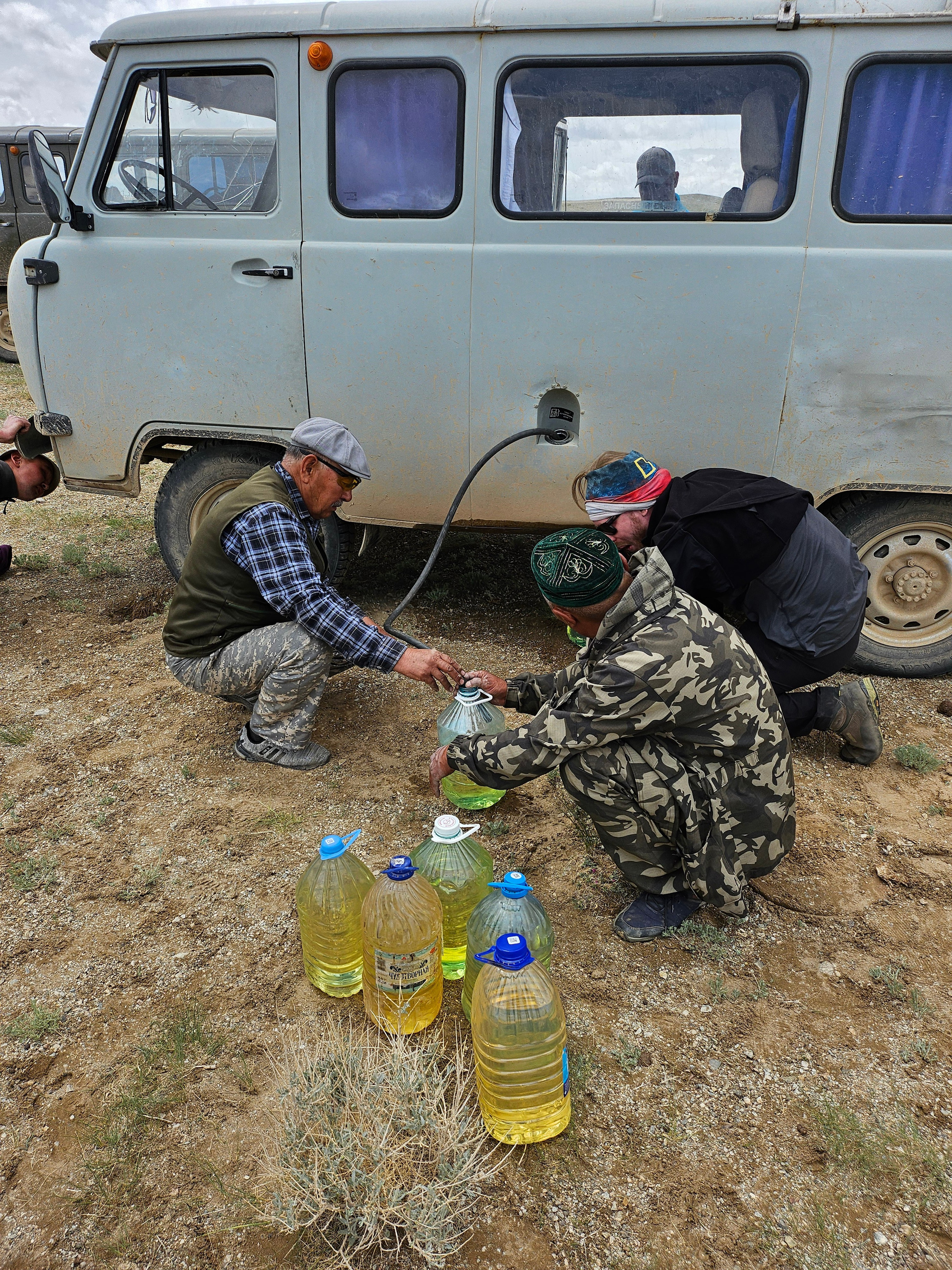 Можно заметить, что и машины такой путь осиливали не с пол тычка. Поломки. Скажете, УАЗ говно, но нет. Говорил и буду говорить, что это лучшая машина для подобных поездок. Он жрет этот вонючий монгольский парафин пополам с мочой дерьмовое топливо, он быстро чинится посреди ничего дендро-фекальным способом конструирования (с помощью говна и палок в смысле), он едет там, где многие останутся ржаветь. Но самые мощные машины — наши водители. Им огромное спасибо, что нонстопом часами за рулями они дотаскивали нас до туда, где нет никого и ничего.